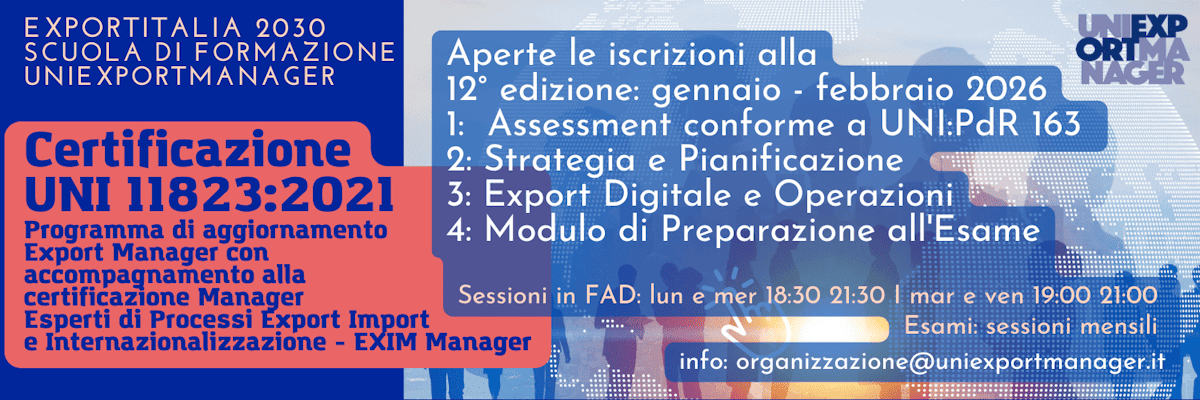 L’associazione professionale Uniexportmanager riunisce e rappresenta gli operatori dell’export management, del commercio internazionale, delle attività connesse all’internazionalizzazione, e accompagna la continua evoluzione della professione attraverso le reti di impresa, il digitale, l’innovazione.