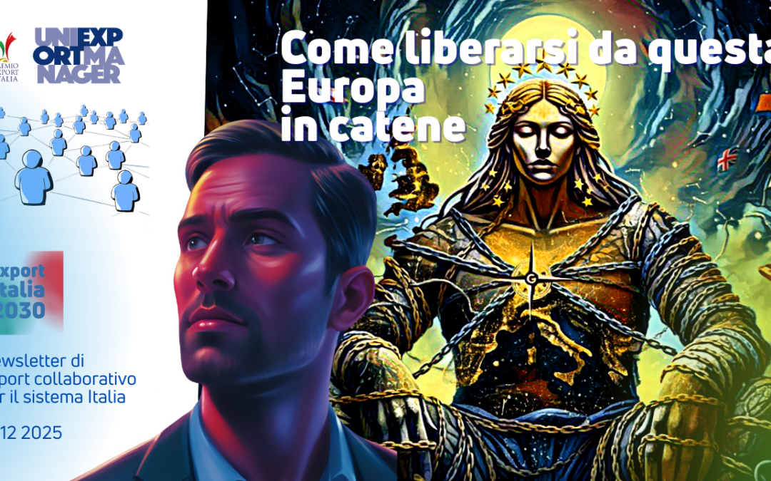 È così che ci liberiamo dalle catene di un’Europa che non è quella che volevamo. Senza servi encomi ai potenti di turno, è così che riprendiamo il futuro dell’export, del Made in Italy autentico, della gente che con l’export vive, lavora, produce per il mercato internazionale e apporta bene comune a questo paese. Continuiamo a lavorare pensando positivo e se credete che questo approccio sia importante per gli exportpeople continuate a leggere e condividere questa newsletter. Grazie. Buon anno da Export Italia 2030.